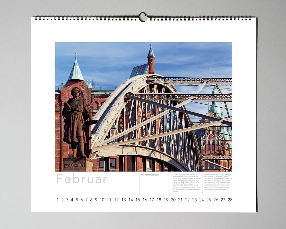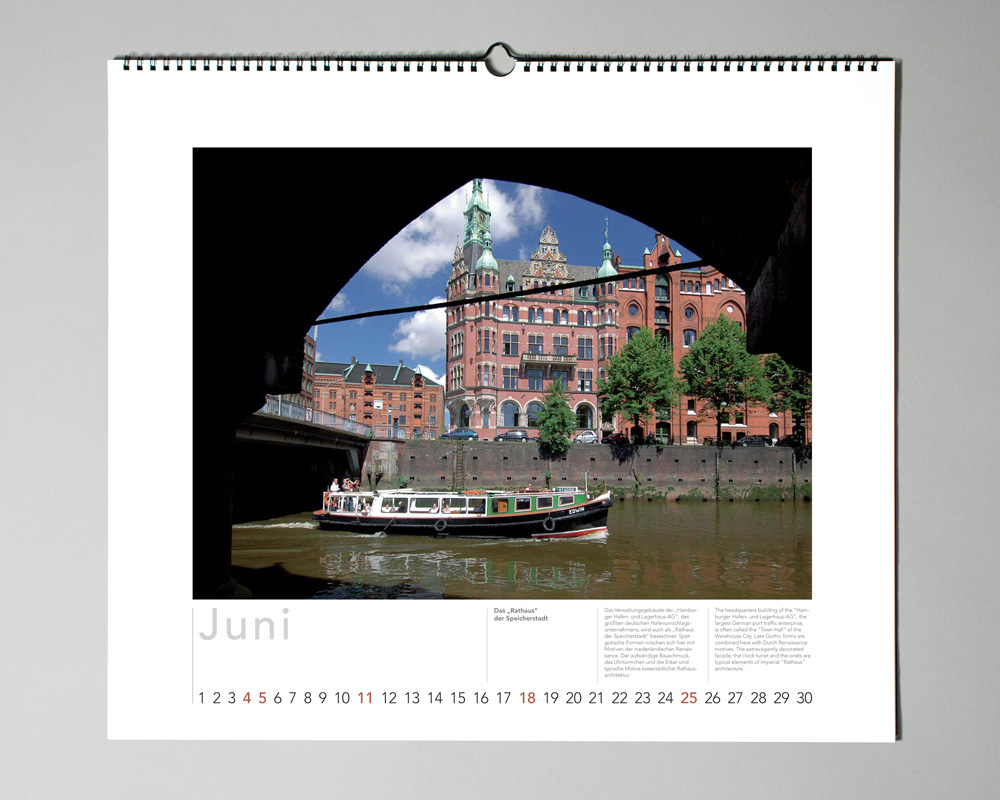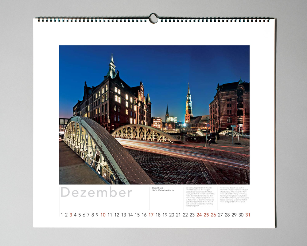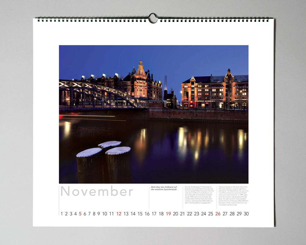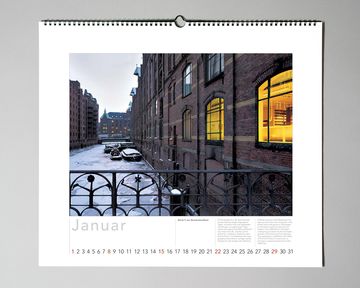 In Zusammenarbeit mit dem Nautik Historie Verlag. Zwölf jahreszeitliche Speicherstadt- und HafenCity-Motive, 50x44 cm, auf Wunsch in kundenspezifischer Ausführung