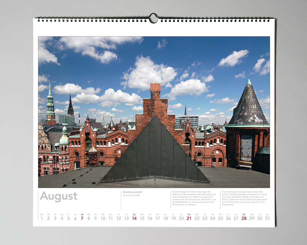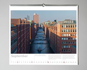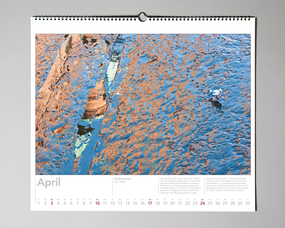 In Zusammenarbeit mit dem Nautik Historie Verlag. Zwölf jahreszeitliche Speicherstadt- und HafenCity-Motive, 50x44 cm, auf Wunsch in kundenspezifischer Ausführung