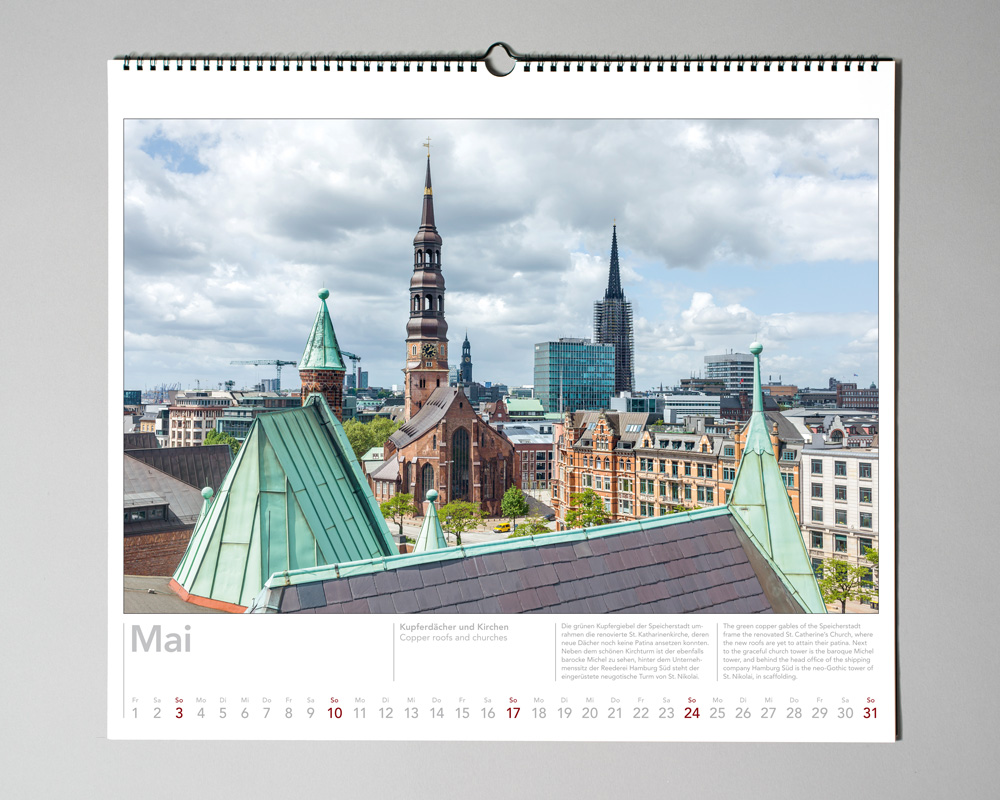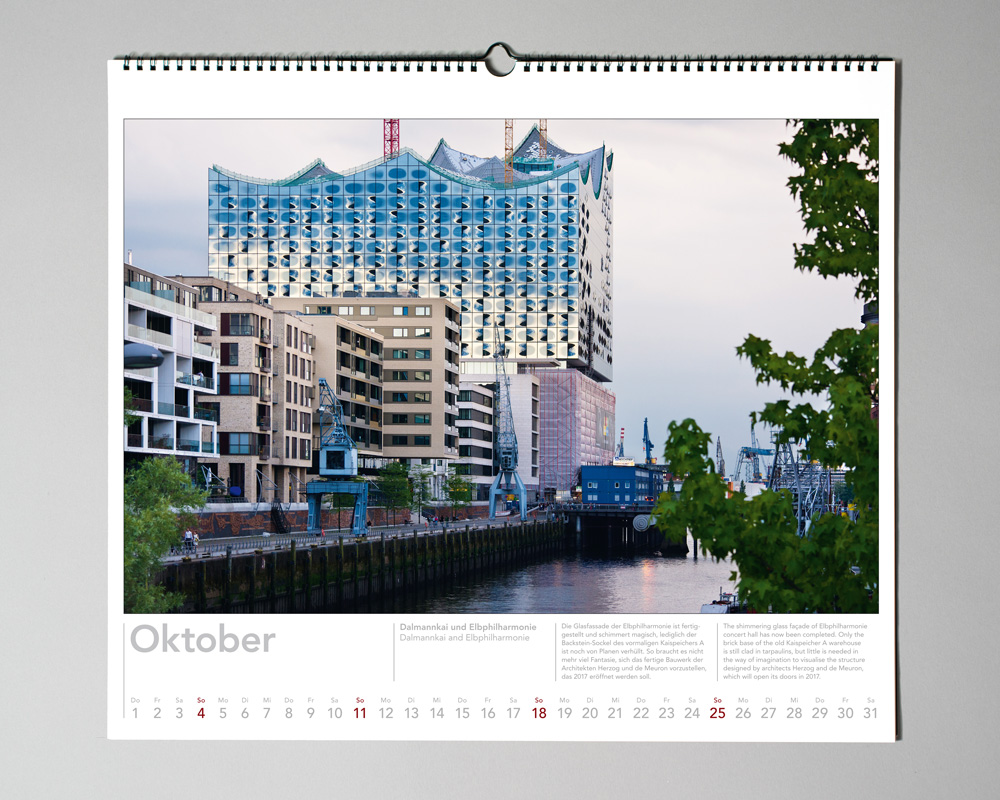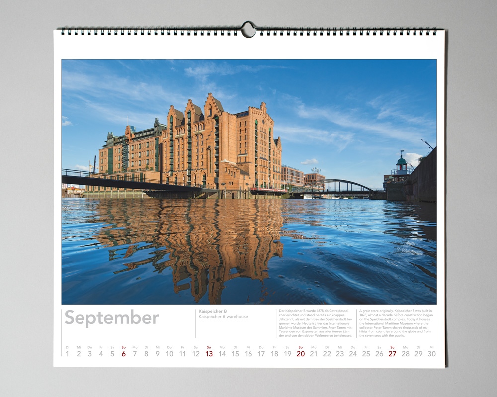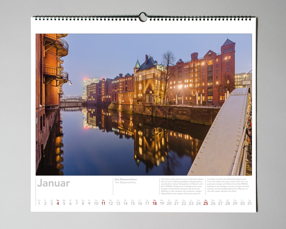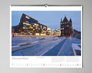 In Zusammenarbeit mit dem Nautik Historie Verlag. Zwölf jahreszeitliche Speicherstadt- und HafenCity-Motive, 50x44 cm, auf Wunsch in kundenspezifischer Ausführung