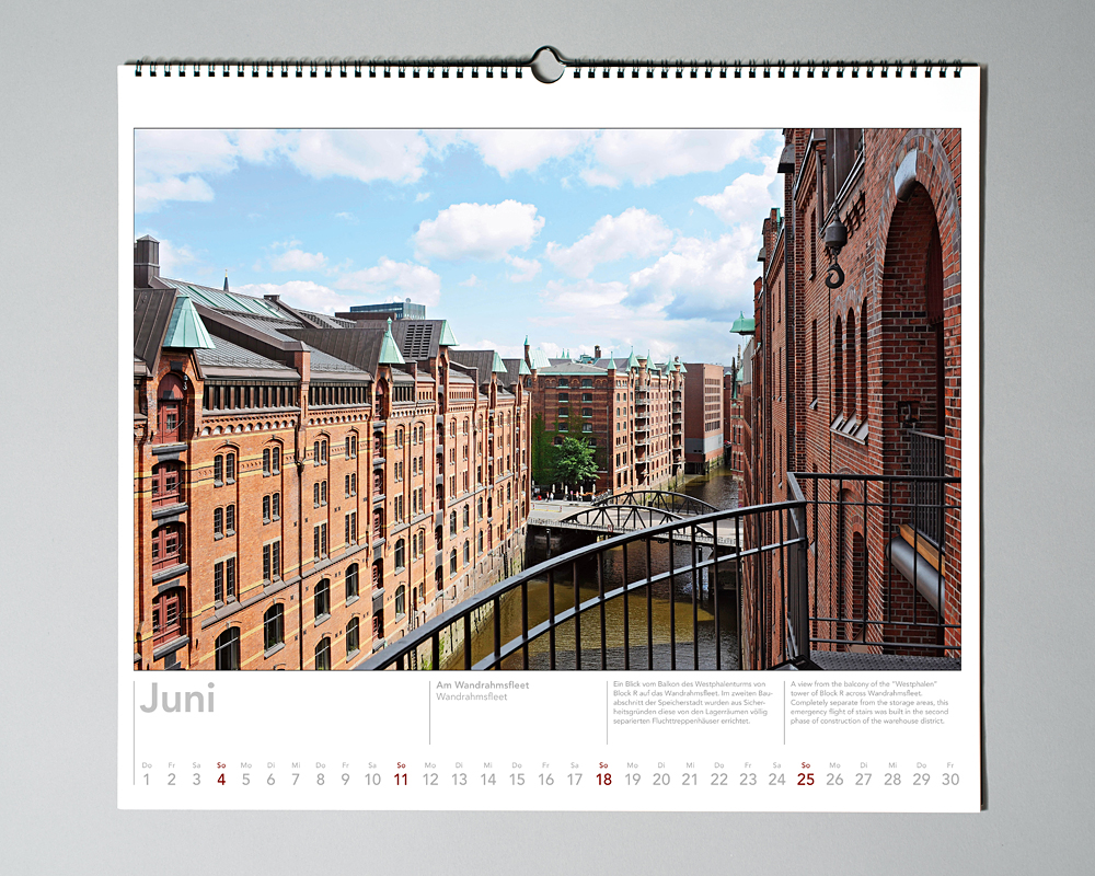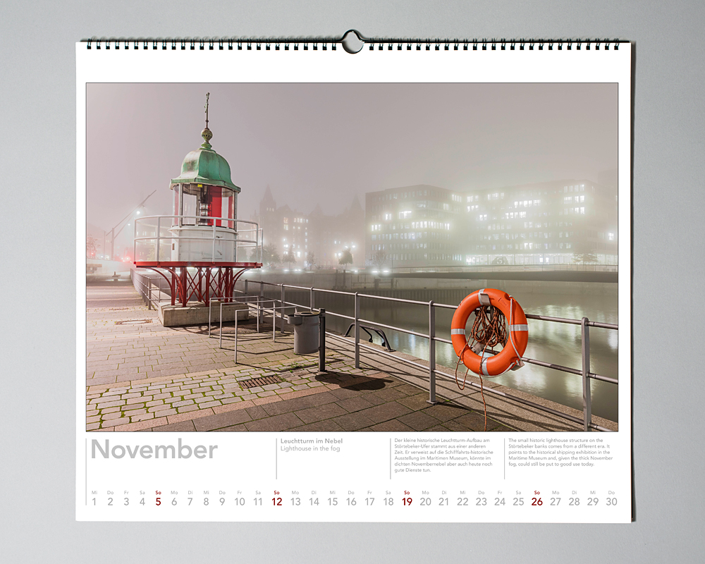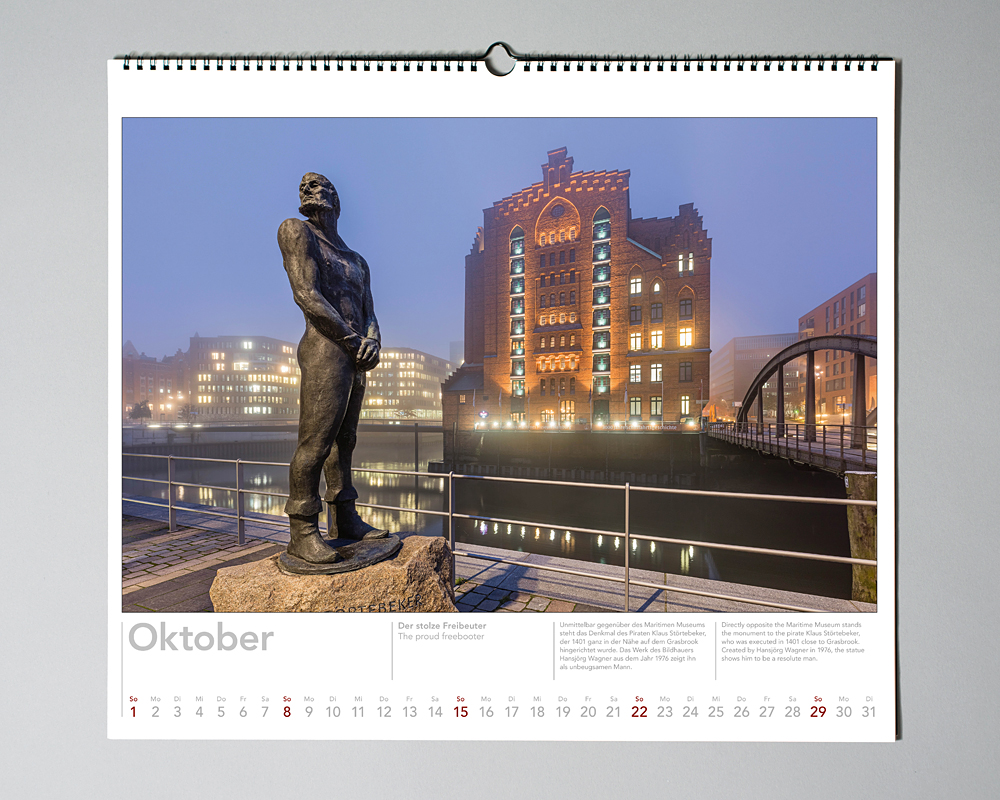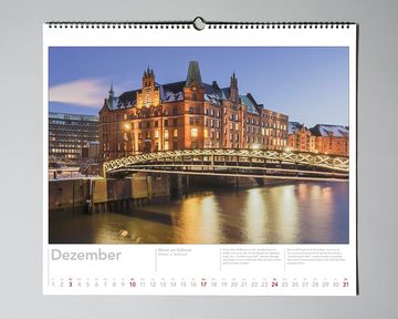 In Zusammenarbeit mit dem Nautik Historie Verlag. Zwölf jahreszeitliche Speicherstadt- und HafenCity-Motive, 50x44 cm, auf Wunsch in kundenspezifischer Ausführung